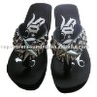 You will be well assured of our big advantage. -High cost performance and high quality. -Strong OEM & ODM ability,Rich experience. Detaied Product Description 1.Art. No.:FSC001,wedge flip flop,lades' flip flop,fashion flip flop 2.Upper: PU/as per requirement 3.Lining:Soft cotton webbing 4.Insole:rubber sponge (20% rubber+80% EVA mixed material),density:35 40 5.Midle sole heel: hard EVA,density:60 65 6.Outsole: Hard EVA,density:65 70 7.Color:can be customized, we produced: Black color only. 8.Size:US stander 5-10,or as per your specification 9.MOQ:2400 pairs per colormixed size, or 200pairs per size. Any other order quatity will effect the price. The more quatity you have, the better price we can offer. 10.Packing:1pair/shoe boxor 1pair/poly bag as requirement,20pairs/carton(or as per your requirement) 11.Your brand and design are welcome 12.Delivery time:30-35 days after the deposit 13.Payment:T/T,L/C Professional OEM & ODM Service offered Please feel free to contact us any time for any details,your Satisfaction is our Aim,your Trust is our Motivity I hope we will have a delightful cooperation and we will always stand on your side to help each other.
